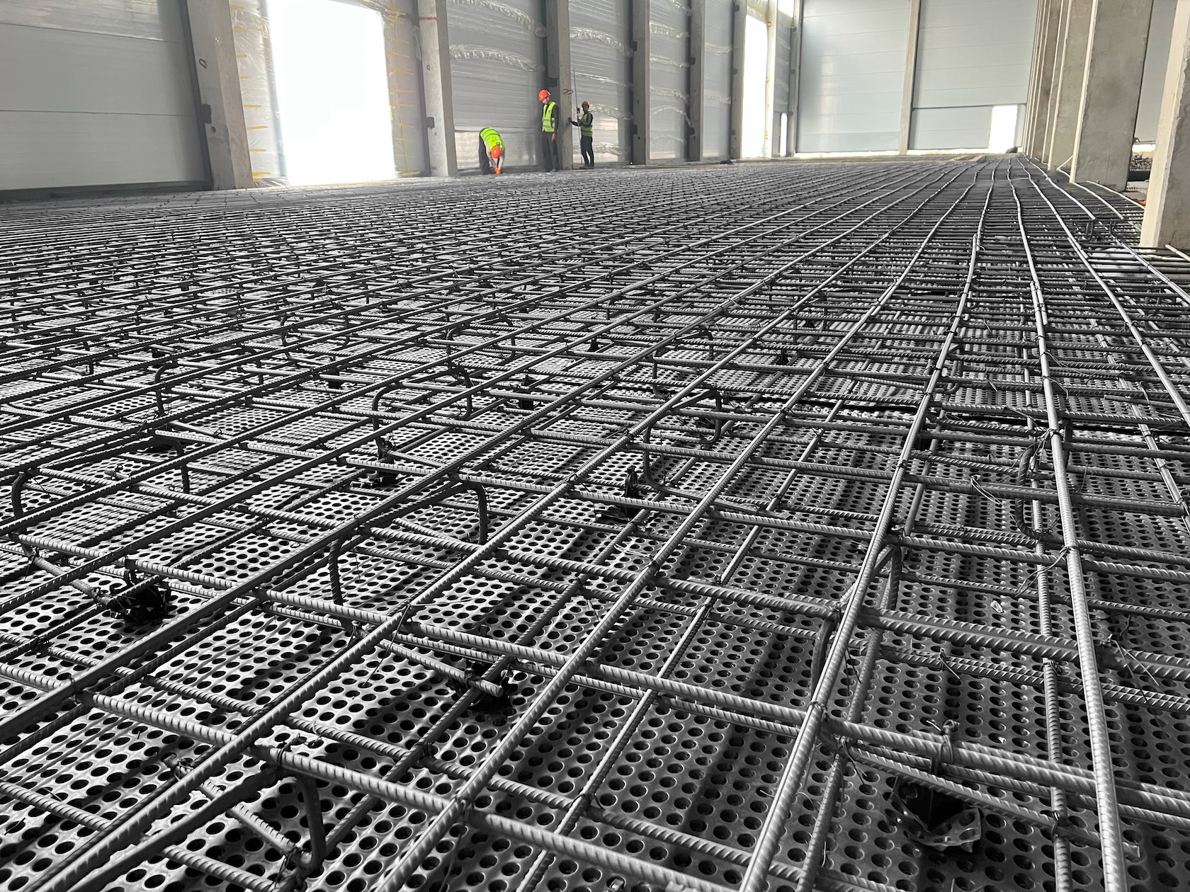 Для каждой карты использовалась несъёмная опалубка, включая обрамление колонн, что помогло добиться ровной геометрии швов и повысить эксплуатационную надёжность полов.