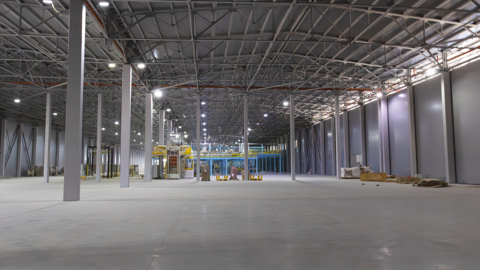 - Omborxonalar (5–8 t) – 3 600 m², ikki qatlamli armokarkas, topping sepilgan beton qalinligi – 200 mm.